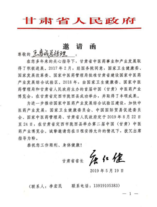 2019年7月4日下午,甘肃省定西市各级领导莅临拼搏网页版登录入口,在座谈会上,定西市人大常委副主任王成文给王睿成总经理亲手递交了甘肃省人民政府唐仁健省长亲笔签名的邀请函,诚挚邀请我司总经理王睿成参加于2019年8月22日至24日在甘肃省定西市陇西县举办的第二届中国(甘肃)中医药产业博览会。 甘肃中药材资源得天独厚,是全国重要的中药材主产区和道地药材生产地之一,素有“千年药乡”“天然药库”之称。紫光辰济药业将以药博会为契机,加强与中医药产业同仁的合作与交流,提升紫光辰济的品牌影响力,以实际行动进一步释放中医药产业潜力和活力,彰显中医药的多重价值,为推动健康中国建设、构建人类命运共同体作出新的更大贡献。 我司总经理王睿成对定西市政府人民政府各级领导的到来表示诚挚的欢迎,感谢甘肃省人民政府的邀请,并表示紫光辰济药业将联合宝鸡市中医药产业联合会各会员单位以最大的诚意和行动参加此次盛会,共同推进中医药产业的全面发展,预祝第二届中国(甘肃)中医药产业博览会圆满成功!