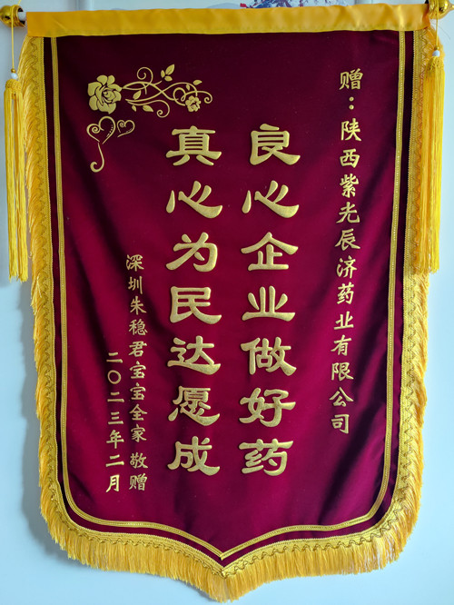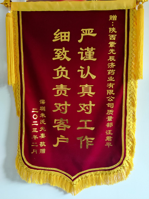 2023年元宵节刚过,正在忙碌上班的汪总工再次接到了陈女士的信息:汪部长,很不好意思,宝宝满月那天就想做面锦旗送给你们,以表达我们的感恩之情,但因后来一段时间深圳疫情严重,我们一家全阳了,忙于治疗和修养,时间耽误了。刚一过年我们就制作了锦旗,今天快递已送到贵公司门卫处,请查收。 打开包装精美的长条型方盒,展开两面烫着金字的旌旗,一方系赠拼搏网页版登录入口:“良心企业做好药,真心为民达愿成”;另一方赠技术总工汪君平:“严谨认真对工作,细致负责对客户”。医者仁心,看着金光闪耀的锦旗,汪总工眼眶有些润湿了。金杯银杯不及老百姓的口碑,这锦旗不仅是对培坤丸疗效的肯定,更是对紫光辰济这个百年老字号药企的认同和赞誉啊! 尽小者大,慎微者著,百年来紫光辰济人脚踏实地,守牢质量底线,用工匠精神坚持做好药,为人民,以疗效确切的产品赢得了消费者的良好口碑;未来发展之路上,紫光辰济将继续做好药品生产,充分发挥中医药的独特优势与作用,守正创新,不断进取,为人民健康提供坚实的保障。