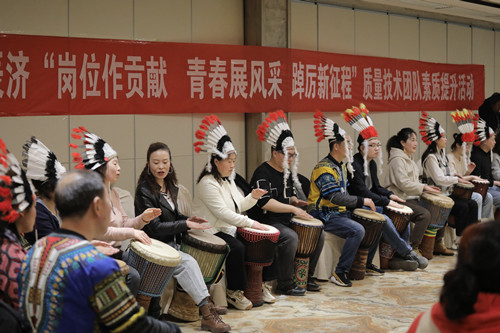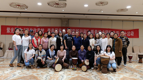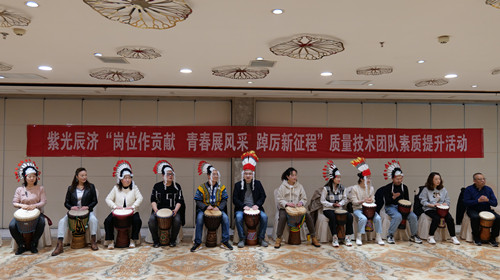 五四青年节来临之际,陕西紫光辰济药业党支部组织公司质量监控部、技术中心、行政部等部门党员、管理干部、青年员工40多人在宝鸡艳阳天会议大厅开展“岗位作贡献、青春展风采、踔厉新征程”质量技术团队素质提升团建活动。 活动专门邀请了宝鸡市非洲鼓艺术团的老师们进行现场讲授,大家在老师的悉心授课下逐渐掌握了非洲鼓的基本演奏技巧,在整齐统一的鼓声中感受到非洲鼓的热情和奔放,授课结束后,艺术团老师们的集体精彩表演和表演中对非洲鼓的完美演绎和诠释,将本次团建活动推向高潮。